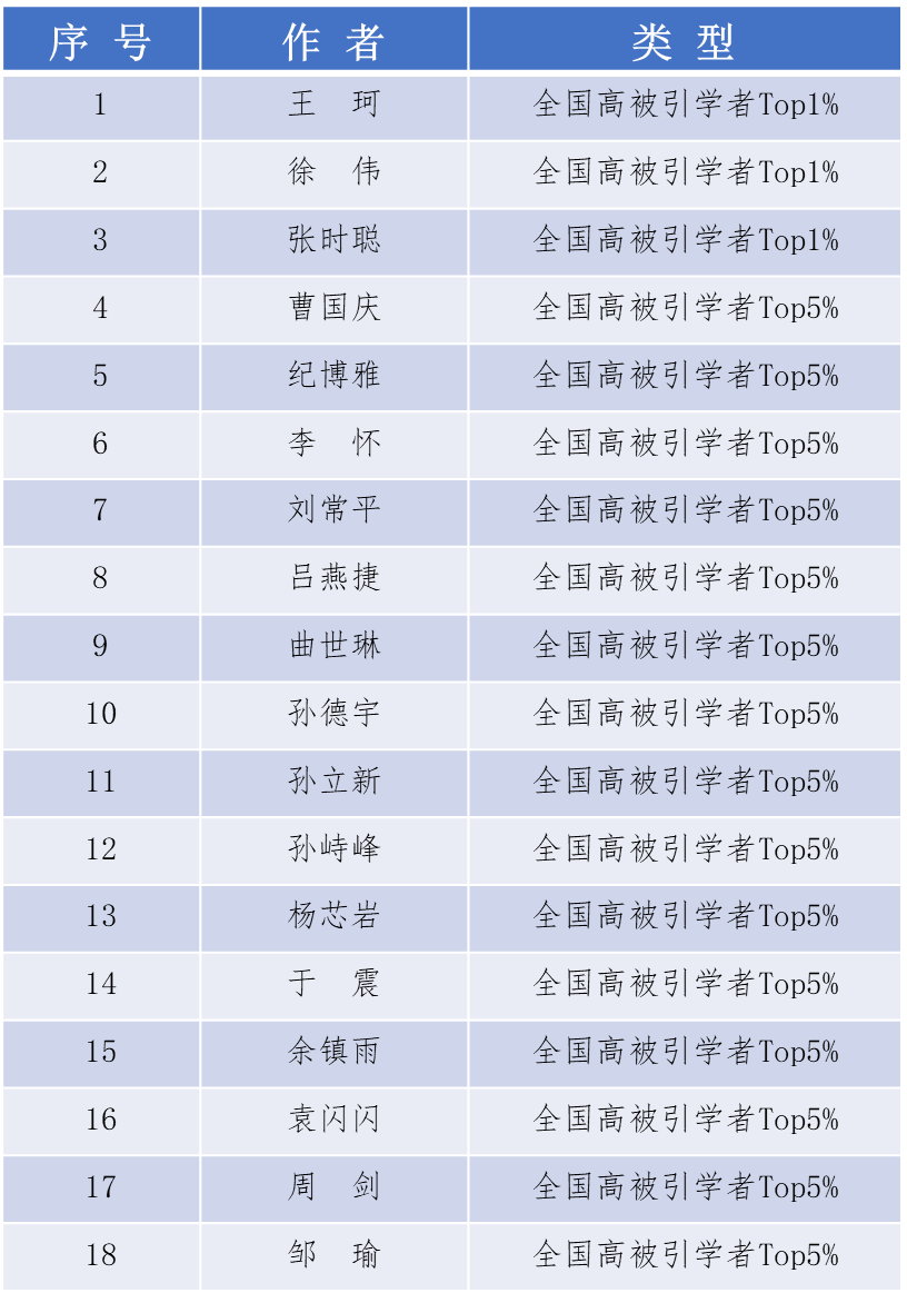 环能科技“2025全国高被引学者”入选名单