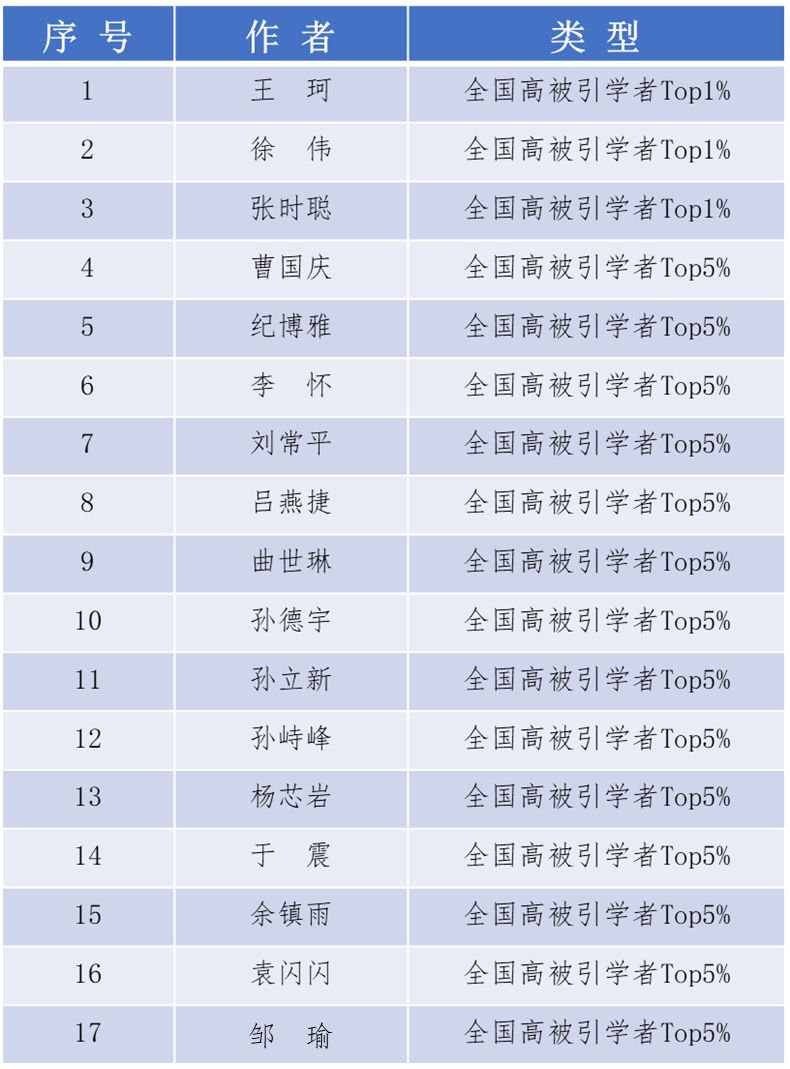 环能科技“2025全国高被引学者”入选名单